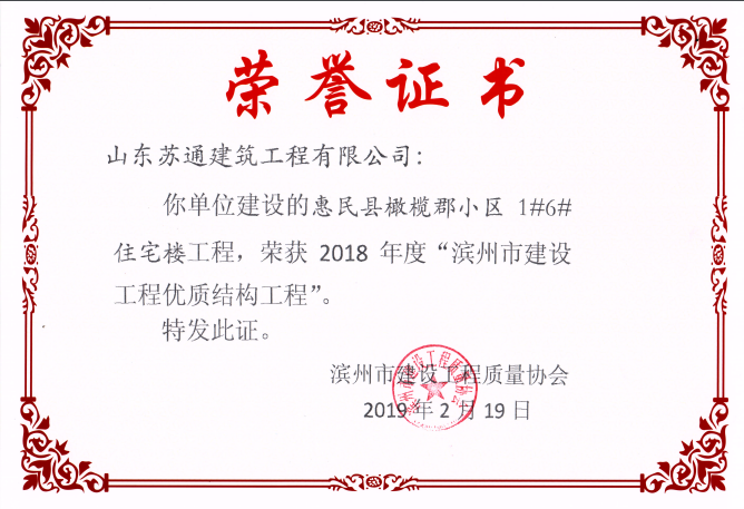 山東蘇通建筑工程有限公司,創建于2009年8月。目前擁有房屋建筑工程施工總承包壹級、市政公用工程施工總承包叁級、水利水電工程施工總承包叁級資質,同時還具有建筑裝修裝飾工程專業承包貳級、消防設施工程專業承包貳級、鋼結構工程專業承包叁級、建筑機電安裝工程專業承包叁級等專業承包資質。 公司總部坐落于山東省濱州市濱城區黃河十二路877號,現有辦公面積約2000平方米,機構設黨支部工會辦公室、總經理辦公室、綜合辦公室、工程管理部、經營預算部、資產財務部、材料設備部、運行管理部、法律事務部等多個職能部門。公司管理體系已經通過了GB/T 19001及GB/T 50430質量管理體系、GB/T 24001環境管理體系(EMS)、GB/T 28001職業健康安全管理體系(OHSMS)等體系的認證。 公司承建完工了濱州市建大教師之家、建大清怡苑、香格里拉水岸綠城住宅小區、雙泰建大城、曲阜崇德公館住宅小區、北海新區御景藍灣住宅小區、沾化德榮國際華城住宅小區、惠民橄欖郡住宅小區等工程項目,目前在建工程項目有:濱州市頤高國際電子商務產業園住宅小區項目、濱州市東盛國際項目、高新區建大中央華府住宅小區項目、濱州市融匯新里程住宅小區項目、濱州市建大秦皇壹號住宅小區項目、濱州市森林花...
